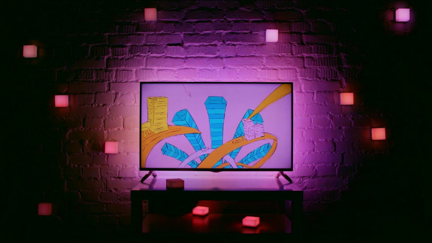 Wireless LED lighting cubes to place on the wall around the main screen or wherever you want